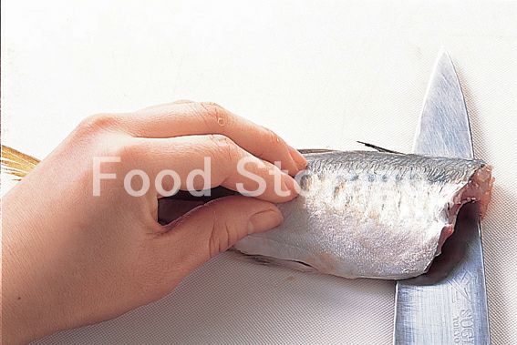あじは頭、ぜいご、内臓を取り除いて3枚におろす。 |