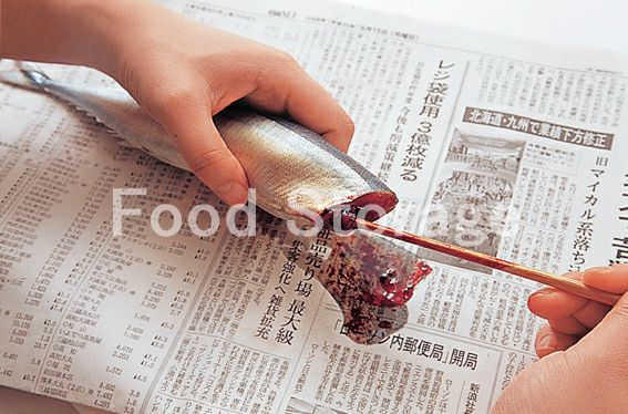 表面と腹の中を流水でよく洗い、キッチンペーパーで水けを拭き取る。 |