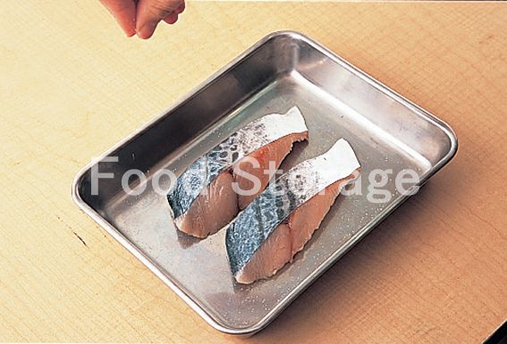 さわらは塩をふって10分ほどおき、水気をペーパータオルで拭き取る。 |