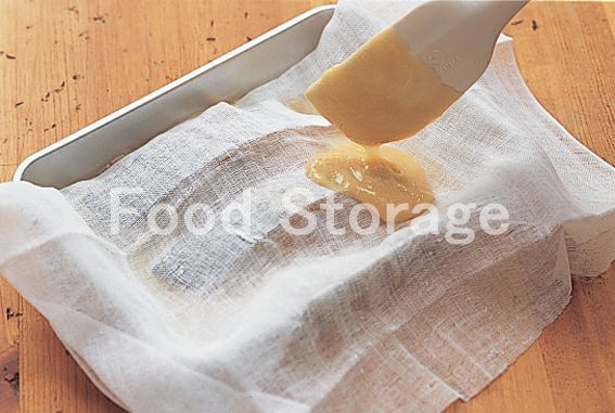 ガーゼをかぶせて2の残りを広げ、ラップをして冷蔵庫で半日以上おく。 |