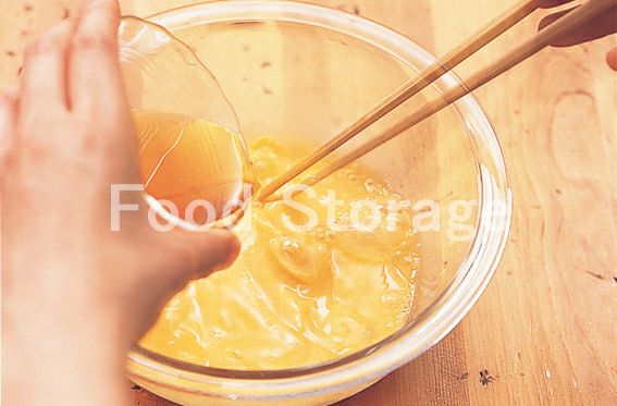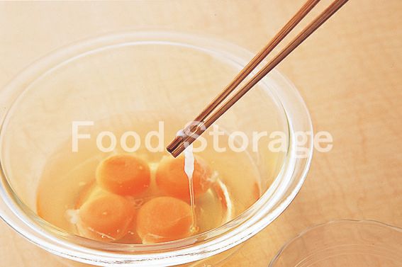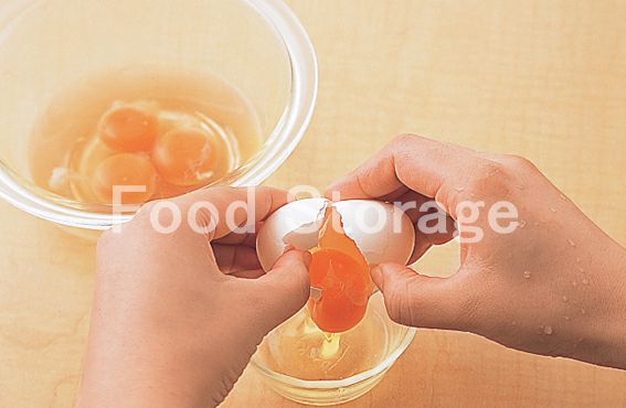 卵は一つずつ小鉢に割って鮮度を確かめ、ボウルに移す。 |