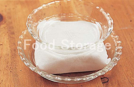 絹ごし豆腐はペーパータオルなどに包み、上から重しをして、しっかりと水きりをする。 |