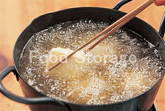 170℃に熱した揚げ油に3をひとつずつ入れて、じっくりと揚げる。最後は火を強めてカラッと仕上げる。 |