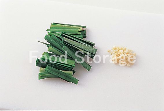 にらはざく切りにし、にんにくはみじん切りにする。
