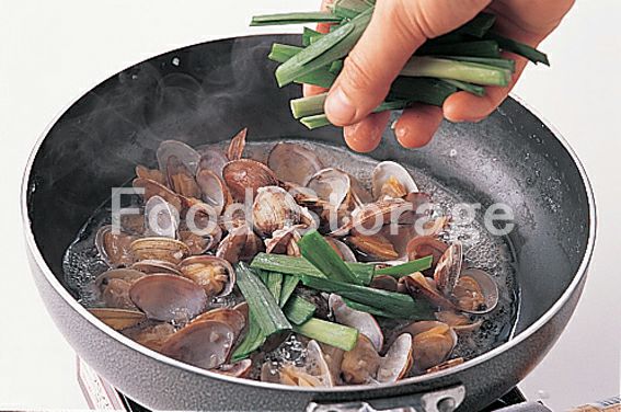 にらの香りがあさりのうまみを引きだして