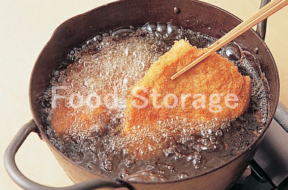 途中で裏返し、全体がきつね色に揚がったら引き上げて油をきる。 |