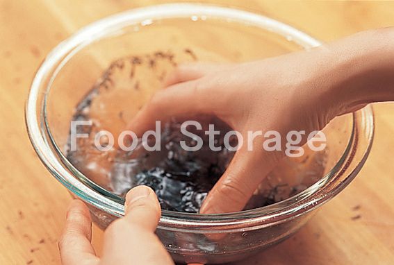 ひじきは、水の中で洗って砂やごみを落とす。 |