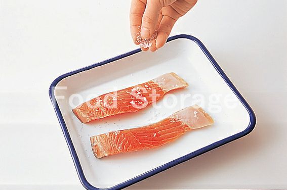 生鮭は、両面に塩、こしょうをふる。 |
