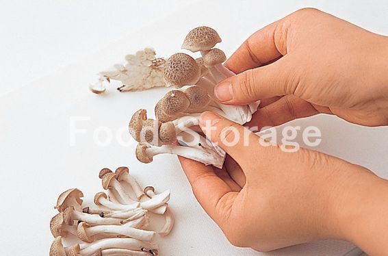 しめじは石づきを切り落として小房に分ける。 |