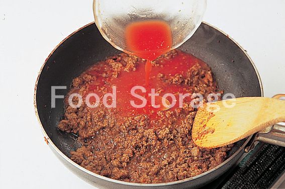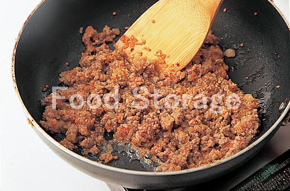 4に合びき肉を加えて塩、こしょうをし、ぽろぽろになるまで炒める。 |