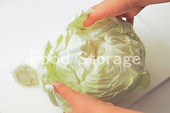 葉を外側から1枚ずつはがす。はがしにくいときは、芯の穴に流水を流し込むとよい |