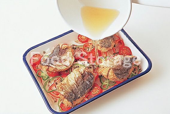 あじ 塩・こしょう 玉ねぎ ピーマン・赤ピーマン ケッパー プチトマト 小麦粉・揚げ油 a(白ワインビネガー 砂糖 塩 こしょう)