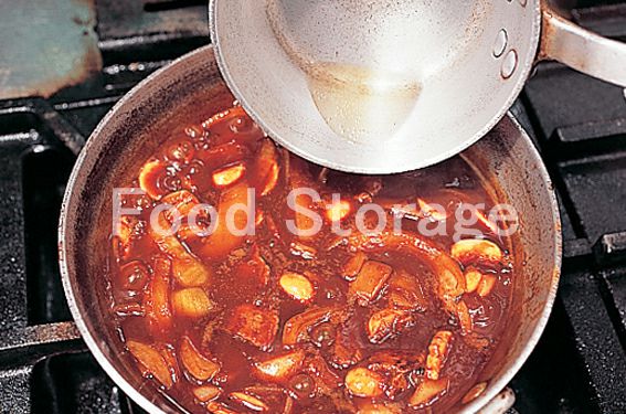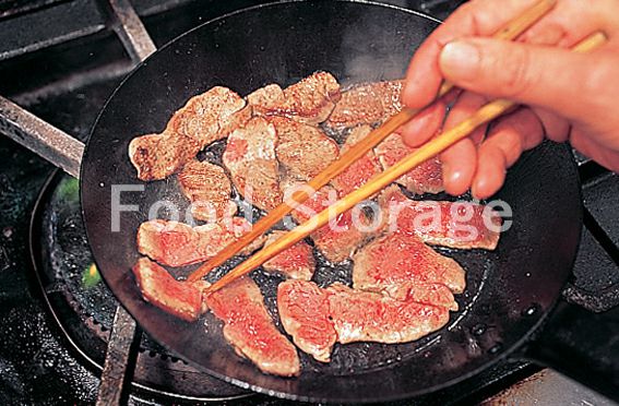 フライパンにサラダ油を熱して牛肉を入れ、強火で表面に焼き色をつけ、赤ワインを加えてアルコール分を飛ばす。 |