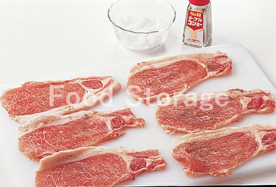 豚ロース肉は広げて並べ、両面に塩、こしょうする。 |