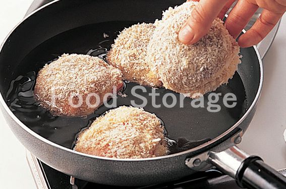 フライパンに2〜3cm深さまで油を入れて170℃に熱し、3を入れてこんがりと揚げる。器にキャベツと一緒に盛り、好みでソース、トマトケチャップを添える。 |