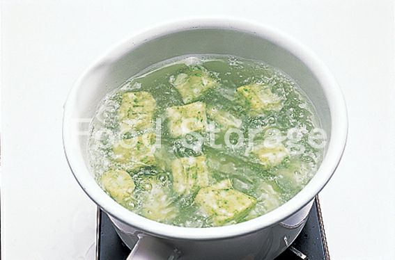 鍋にたっぷりの湯を沸かして塩小さじ1(分量外)を加え、2を入れてゆでる。浮き上がってきたらざるにあげる。 |