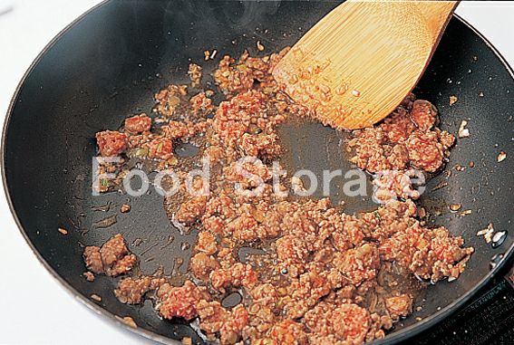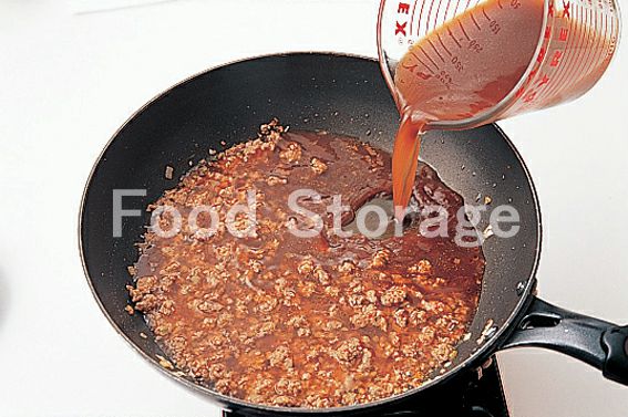 鍋にサラダ油を熱して弱火にし、長ねぎ、しょうが、豆板醤を入れて炒め、香りが立ったら合びき肉を加えて強火にし、ほぐしながらよく炒め、塩、こしょうをふる。 |