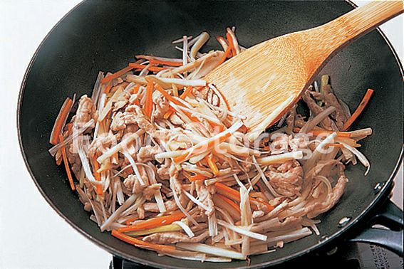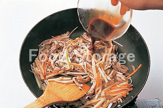 豚肉の色が変わったら、2、3を加えて炒め合わせる。 |