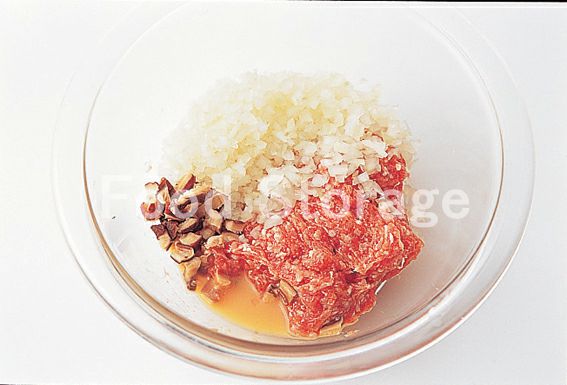 ボウルにひき肉を入れてaを加え、粘りが出るまで練り混ぜる。 |