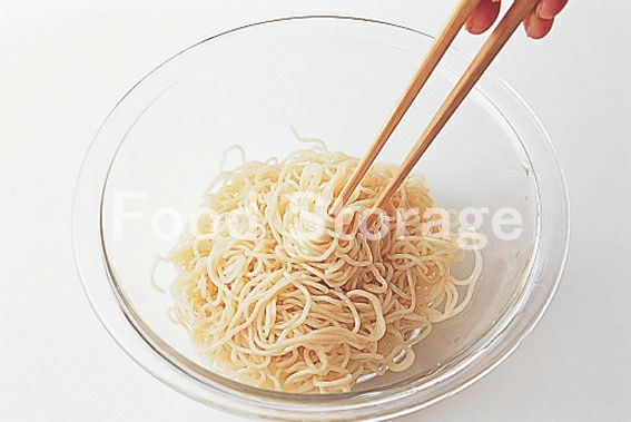 鍋にたっぷりの湯を沸かして中華麺をゆで、水にとって洗い、水けをきってごま油をからめる。 |