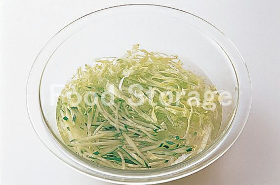 きゅうり、レタスはせん切りにして冷水にさらし、水けをよくきる。プチトマトは4等分に切る。 |