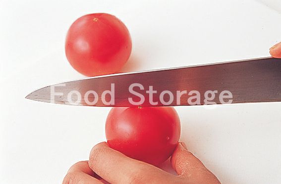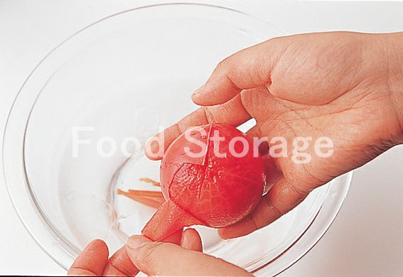 トマトはヘタをとり、反対側に十文字の切り込みを浅く入れる。 |
