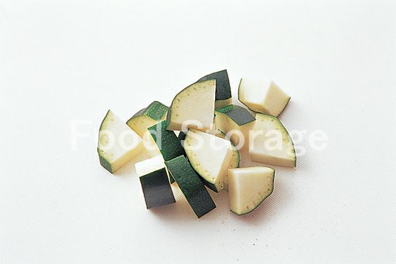 ズッキーニは2cm厚さのいちょう切りにする。 |