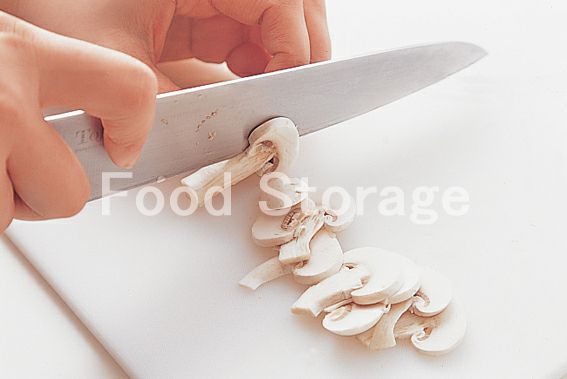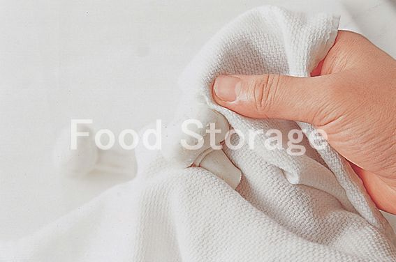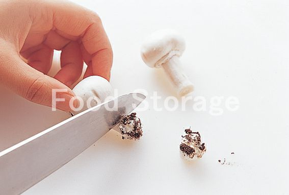 マッシュルームは泥のついた石づきを切り落とす。 |