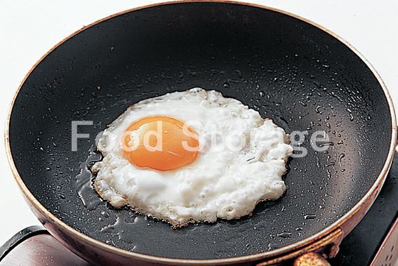 フライパンにサラダ油を熱し、卵を割り入れて半熟の目玉焼きを作る。 |