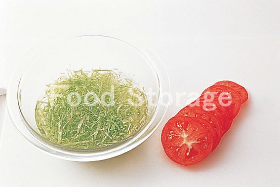 トマトは輪切りにする。レタスはせん切りにして冷水にさらし、水けをよくきる。 |