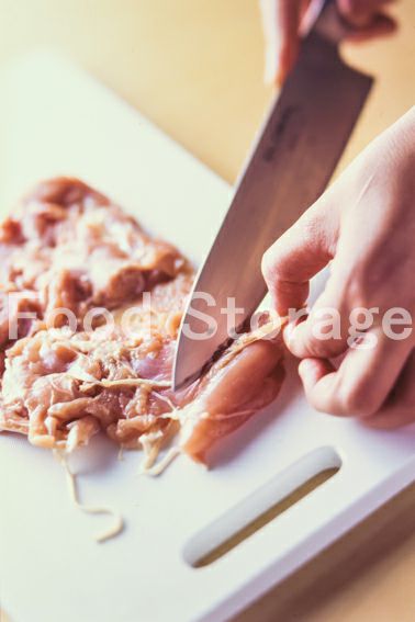 鶏もも肉は皮目にフォークなどで数箇所穴を開ける。 |