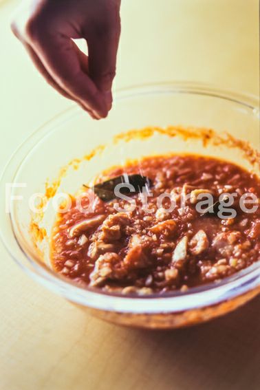 ホールトマトはつぶしておく。 |