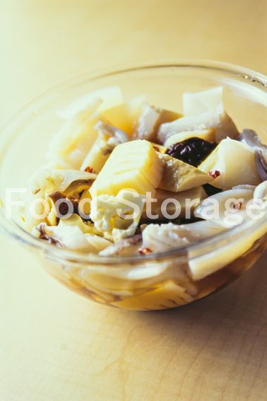 するめいかは胴と足を離し、胴は開いて皮をむいて格子状に切り込みを入れ、食べやすい大きさに切る。 |