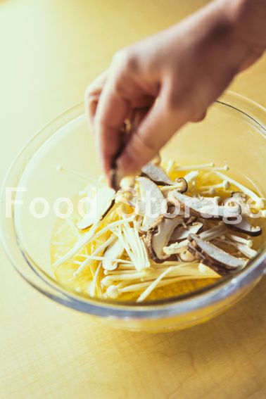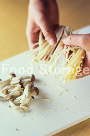 しいたけは石づきを切り落として薄切り、しめじ、えのきだけはほぐす。