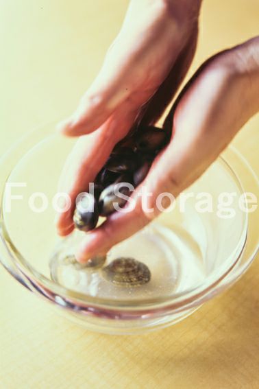 あさりは塩水に浸して砂出しし、よく洗い水気をきる。 |
