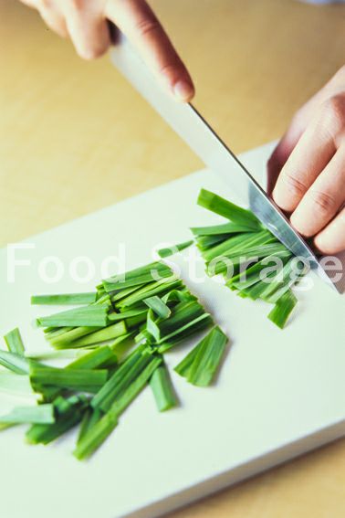 にらはざく切りにする。 |