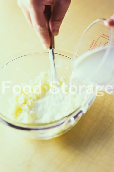 1を熱いうちにつぶし、牛乳を少しずつ加えながら混ぜ合わせる。 |