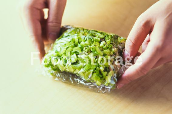 大根の葉は小口切りにし、ラップで包んで電子レンジ(600W)で1分加熱する。