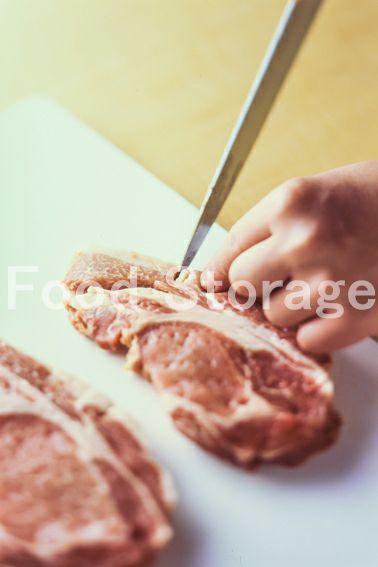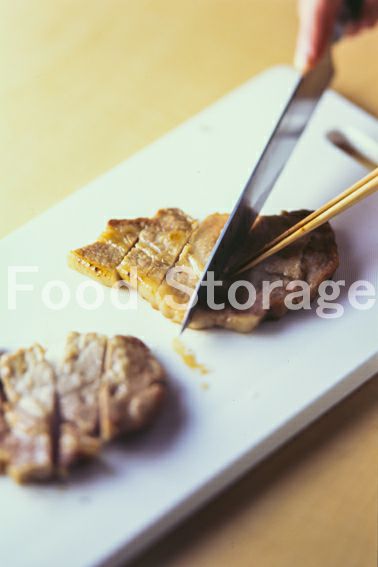 2の脂身の部分に切り込みを入れる。 |