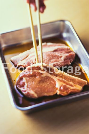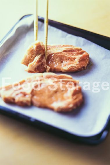 豚ロース肉はフォークなどで数箇所穴を開ける。 |