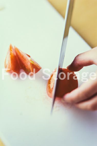キャベツはせん切り、トマトはくし形に切る。 |