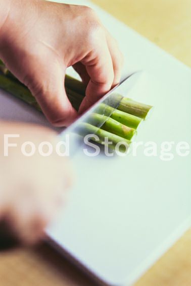 グリーンアスパラガスは根元のかたい部分を切り落とす。 |