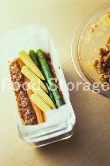 | ミートローフはオーブンならではのとっておき料理。おもてなしや誕生日などに作ってみたいごちそうです。中に入れる野菜をレンジ加熱で下ゆでして、ひき肉だねを型に詰めてオーブンで焼きます。切り分けたときの断面がきれい。 |