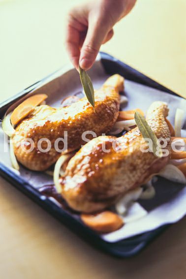 | クリスマスやバレンタインなど特別な日に、自分でローストチキンを作ってみましょう。オーブンがあれば簡単。下味をしっかりつけてローリエをのせて焼けば、本格的な味わいに。 |