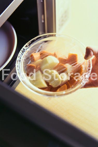 じゃがいもは皮をむいて4等分に切り、にんじんは乱切りにし、耐熱ボウルに入れてラップをし、電子レンジ(600W)で4分加熱する。 |