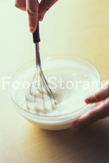 耐熱ボウルに市販のホワイトソース、湯、塩、こしょうを入れて混ぜ合わせる。 |