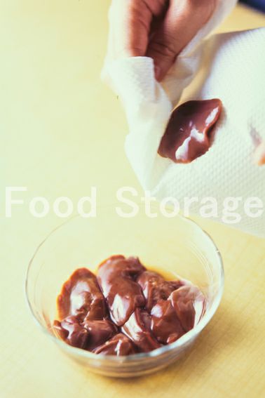 オーブンは200℃に予熱し、鶏レバーは余分な脂肪を取り除いて血抜きをしてよく洗い、水気をふき取る。 |