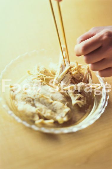 1は電子レンジ(600W)で5分加熱し、手でほぐす。 |