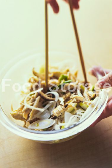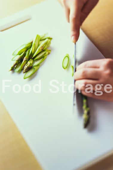 長ねぎ、グリーンアスパラガスは斜め薄切りにする。 |