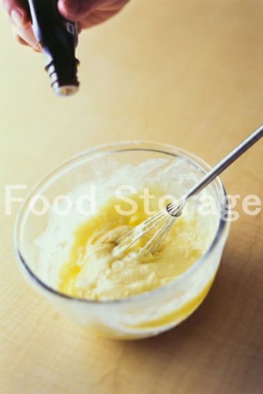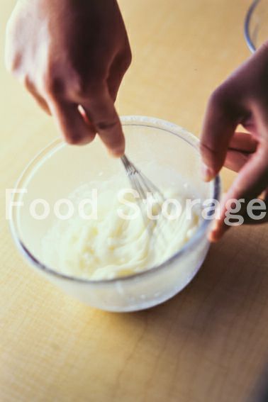 7にバニラエッセンスを加えてカスタードクリームを仕上げる。 |